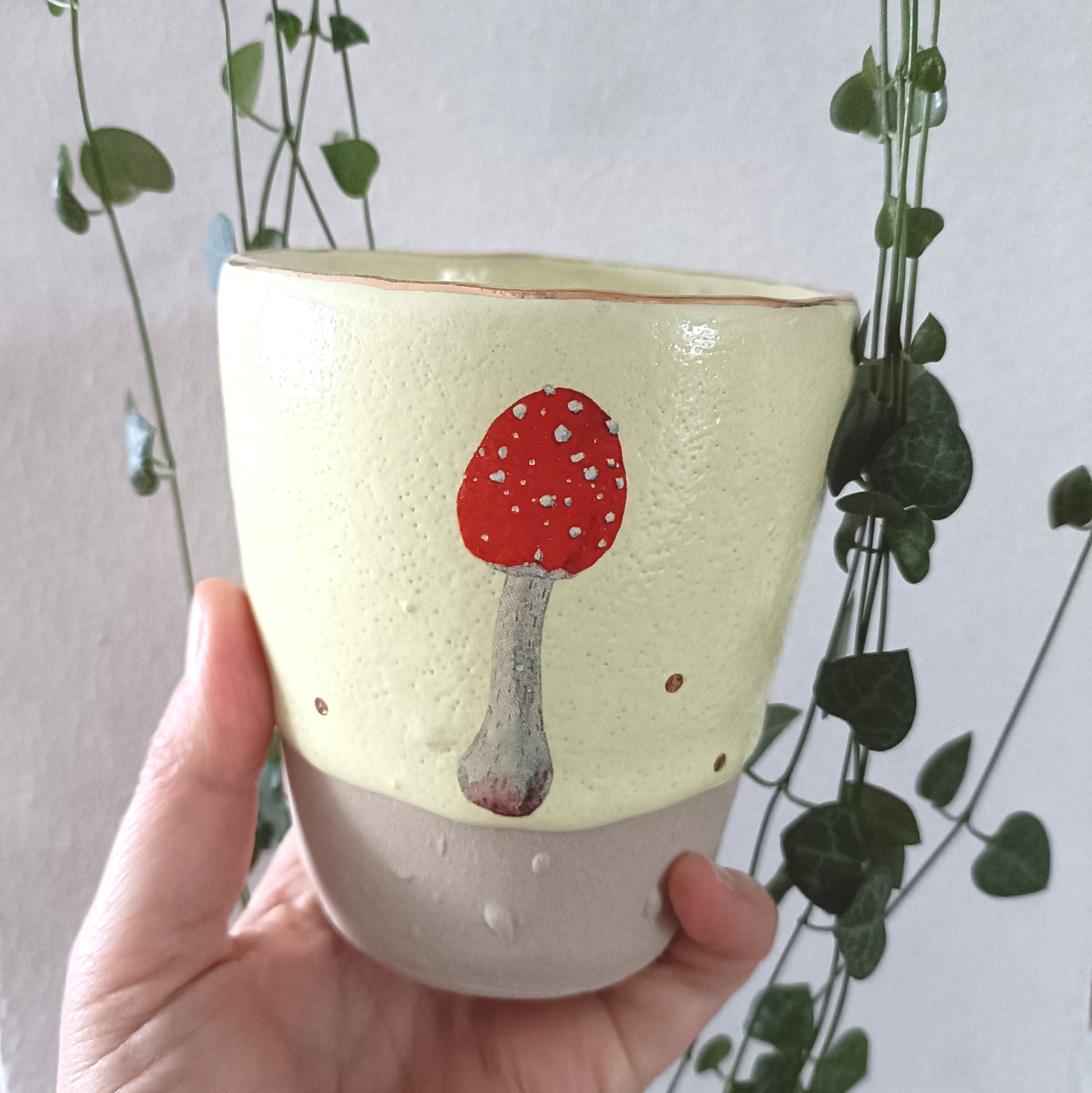Großer Keramik Becher Gold Pilz - ready to ship