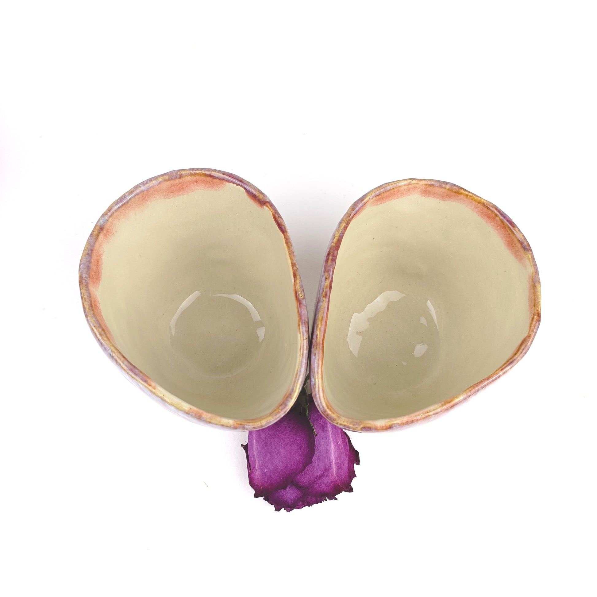 Jeder Becher ist ein Unikat – kleine Unterschiede in Form, Glasur und Farbe machen jedes Set zu einem individuellen Kunstwerk.