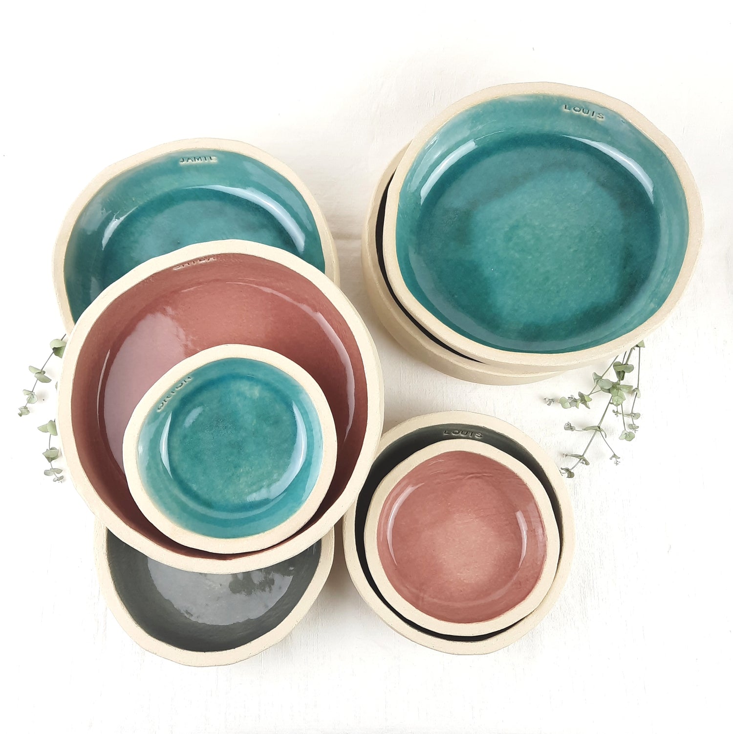 Das Geschirr wird per Hand hergestellt und mit viel Sorgfalt glasiert. Unebenheiten sind dabei normal und gewollt